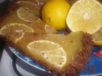 Украсить ломтиками лимона и поставить в холодильник на 2-3 часа. Подавать лимонный торт охлаждённым, присыпав сахарной пудрой или тертым шоколадом |
