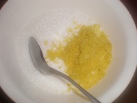 Добавьте сахарный песок и тщательно перемешайте цедру с песком. Песок приобретёт приятный желтый цвет. Дать постоять 10-30 минут (будет более насыщенный лимонный вкус). |