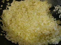 Добавить к луку и как следует перемешать. Постоянно помешивая, поджаривать рис минут 15 на сильном огне. |