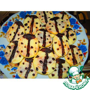 Творожное Печенье "Божьи коровки ". Совместное творчество меня и моих деток. Дело было вечером, делать было нечего. Свет отключили, и мои детки стали от безделья сходить с ума. Решила их занять выпечкой, ну а результат вы можете видеть на фото. Приготовление. Из творога, яиц, сахара, крахмала, муки и гашеной соды замешиваем тесто (я добавила немного ванили), скатываем тесто в шар и ставим в холодильник на 30 минут. Готовое тесто раскатываем в пласт и стаканом вырезаем кружочки. Противень смазываем маслом и застилаем пекарской бумагой, укладываем наши кружочки и отправляем в разогретую духовку до готовности (15-20 минут). Готовые печеньки охлаждаем и украшаем растопленным шоколадом. Шоколад ставим на водяную баньку и, как только он растопится, начинаем им украшать печенья. Мои детки решили сделать божьи коровки, ну а вы можете пофантазировать. Приятного аппетита. |