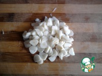 Хорошо перемешать и добавить нарезанное мясо (правда, я приготовила из курицы - мне хотелось курочки). |