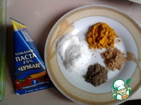 Когда помидоры станут мягкими, добавить томатную пасту, соль и приправы. |