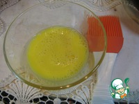 Слегка взбить вилкой 2 желтка с чайной ложкой воды. |