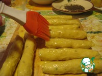 Смазываем палочки желтками. |