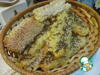 Половину палочек обваливаем в кунжуте. |