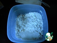 Овсяные хлопья и муку в большой миске смешать с разрыхлителем, сахаром и солью. |