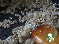 Добавить к луку семечки и продолжить обжаривание в течение 2-3 минут, помешивая. |