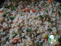 Добавить рис, тщательно перемешать, посолить и поперчить. Закрыть крышкой и на маленьком огне оставить доходить 5-7 минут. Готовое блюдо можно посыпать зеленью. |