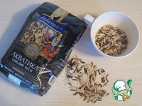 Вначале отварим промытый рис. Для этого киша я взяла рис фирмы Мистраль Акватика color mix. Залила водой 1:2 и отварила в течение 30 минут на медленном огне, после закипания. |