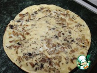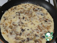 Когда грибы с луком готовы, заливаем их яично-молочной смесью. Доводим до готовности, накрыв крышкой. |