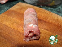 Омлет нарезаем полосками. Каждую полоску кладем на подготовленный кусок мяса и заворачиваем, при необходимости скрепляем зубочисткой или ниткой. |
