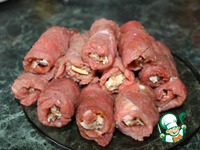 Описание: Крученики - национальное украинское блюдо, в мясо заворачивается начинка, обжаривается и тушится. Начинка может быть совершенно разной, я решила приготовить с омлетом и грибами. Несмотря на то, что мясо было телятинa, на вкус крученики получились очень нежные, сочные с необычно-пикантной начинкой.