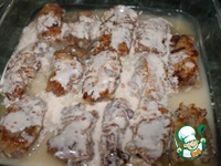 Поливаем соусом рулетики и добавляем немного воды, чтоб рулетики на половину были скрыты. Ставим в разогретую духовку до 180-200 град. на 30 мин. Приятного Вам аппетита!!! |