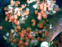 Морковь и лук нарезать маленькими кубиками и обжарить |