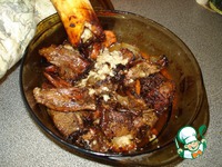 Обильно натираем Оссобуко смесью из пряных трав, хорошо втирая в прорези, которые вы сделали ножом. Перекладываете в жаровню, в которой мясо будет готовиться. Нарезаете крупно морковь и лук. |
