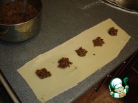 Накройте тестом начинку, сложив полоску теста пополам. |