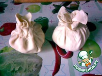 тесто собрать в узелок. Сверху смазать яйцом и посыпать сахаром. Противень смочить водой, выпекать в духовке 10-15 минут. |