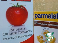 Для приготовления блюда были использованы следующие продукты Parmalat: протертые помидоры и сливки для соуса. |