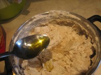 Соединить дрожжи с мукой и влить оливковое масло |