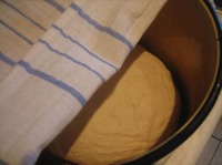 Смазать кастрюлю растительным маслом, положить в нее тесто, накрыть кастрюлю, поставить в теплое место для подъема на 2-3 часа, через час обмять. |