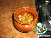Порезать маленькими кусочками мясо, немного обжарить. Добавить к мясу нарезанный кубиками лук, натереть на тёрке морковь - обжарить. |