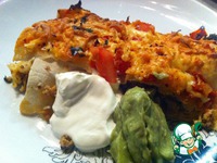 Описание: Энчиладас - мексиканское блюдо, тортильи с начинкой, запечённые под острым соусом. Начинка любая - мясо, овощи, грибы.