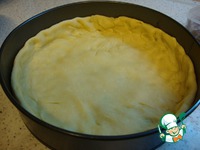Тесто выложить в форму для выпечки, сформировать бортики и поставить в духовку, нагретую до 200 гр., минут на 10 для того, чтобы подсушить корж. |