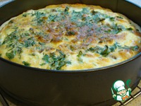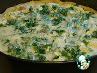В форму для выпечки с подсушенным коржом выложить тыкву с грибами. Посыпать зеленью |