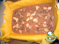 4. Раскатать 2/3 теста в тонкий пласт. Оставшееся тесто раскатать тонким пластом и вырезать из него «крышку» размером с форму для запекания |