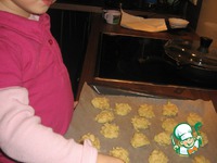 Раскладываем тесто чайной ложечкой на противень, покрытый пекарской бумагой. В каждый шарик кладем орешек. Доча очень старалась класть ровненько. |