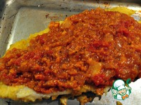 Покрываем томатным соусом нашу обжаренную рыбу и ставим в горячую духовку 180-200 градусов на 5-7минут |