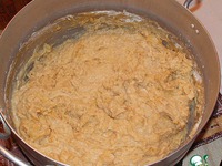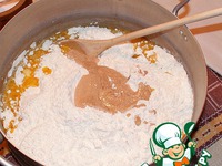 Посыпаем сверху мукой, закрываем кастрюлю крышкой и ставим в теплое место (я - в наполненную горячей водой ванну). Первый подмес подходит где-то час, и пока можно заниматься начинкой.