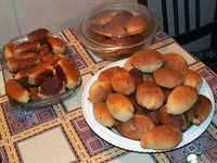Второй подмес. Обминаем тесто, чтобы удалить пузырьки углекислого газа, мешающие дрожам расти. Добавляем оставшуюся муку и растительное масло. Вот тут ВНИМАНИЕ: тесто не должно быть крутым и сейчас! Нормально замешенное тесто не будет на этом этапе липнуть к рукам и на ощущение будет шелковистым, податливым, не текучим - словом, практически готовым к раобте. Снова присыпаем мукой и оставляем в покое еще на полчаса-час. Мое почему-то норовит пойти погулять уже через 20 минут :)