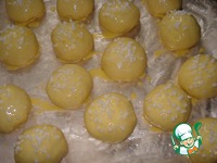 Оставить подходить минут на 20, потом смазать желтком, сверху можно украсить сахаром. |