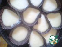 Итак! Перемешиваем аккуратно взбитые белки с основной массой. И вот пришло время подготовить формочки (смазать маслом, можно посыпать коричневым сахаром) и наполнить их, но только до половины!!!