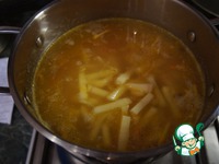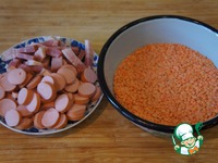 Приготовить овощной бульон. Я готовила половину порции. В кипящий овощной бульон всыпать чечевицу и варить 20 минут на слабом огне, часто снимая пену. |