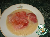 Отбитое мясо обмакнуть с яйцо, затем обвалять в панировочных сухарях. |