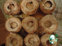 Шампиньоны должны быть крупными!!! (7 см в диаметре желательно). Вырезаем у них ножки. |