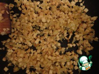 Шляпки отложили. Ножки мелко крошим и добавляем к прозрачному луку. Обжариваем 5-7 минут. |