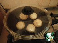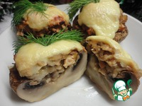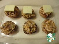 Вот такие красавцы получаются. Лишнюю жидкость убираем бумажным полотенцем. Выкладываем в форму для запекания. Немного присолить внутри шляпок. |