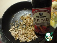 Добавляем соус-маринад "Kikkoman", перемешиваем. Обжарить ещё 3-4 минутки. Если у вас образовалась жидкость, тогда до полного её испарения. У меня этого не случается. |