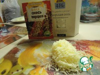 Трём сыр на мелкой тёрке, но не весь! Немного надо оставить для верха. Подготавливаем соль и специи, которые вы предпочитаете. |