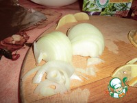 Добавляем лимон. Если резали четвертинки, то с двух сторон обкладываем. |