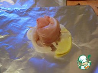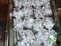 И так делаем с каждой полосочкой филе. Кулечки выкладываем на противень и ставим в духовку. |