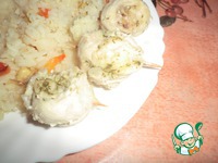 Берем полоску филе и сворачиваем его в рулетик (как на фото), закрепляем зубочисткой. |