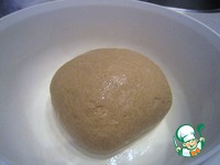 По окончании процесса замешивания из теста формуем шар, смазываем растительным маслом и выкладываем в ёмкость. Оставляем примерно на час. |