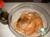 Натираем мясо солью, черным перцем и карри и маринуем в соевом соусе 30-60 минут. |