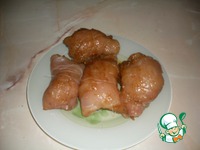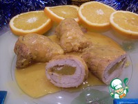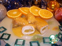 Описание: Куриные рулеты с персиком и голубым сыром под апельсиновым соусом. Пока готовила, на конкурсе уже появились рулетики с голубым сыром. Но в новогоднюю ночь стоит все-таки попробовать всего и побольше. Думаю, мое блюдо тоже найдет своих поклонников.