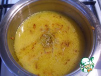 В обжаренную морковь выливаем апельсиновый сок, вино, добавляем щепотку розмарина. Кипятим пару минут, потом взбиваем соус блендером. |