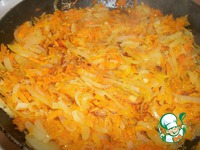 Морковь натереть на крупной тёрке, лук нарезать полукольцами.. всё подсолить и обжарить на растительном масле. |